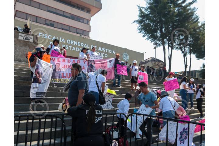 TOLUCA, ESTADO DE MÉXICO, 11MAYO2023.- En el marco del Día Nacional de la Lucha en Contra de la Violencia Vicaria familiares y amigos de María Guadalupe González Martínez quien lleva 107 en prisión preventiva acusada por abuso sexual en contra de la actual pareja del padre de sus hijos, se manifestaron en la Fiscalía General de Justicia del Estado de México exigiendo justicia. FOTO: CRISANTA ESPINOSA AGUILAR /CUARTOSCURO.COM