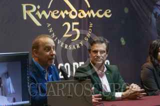 CIUDAD DE MÉXICO, 11MAYO2023.- El actor Mark Tacher y Jaime Salinas, director ejecutivo de Ort de México, anunciaron que el espectáculo Riverdance de danza y música Celta vendrá a México el mes de junio, esto luego de 25 años de presentarse por primera vez en nuestro país. FOTO: MOISÉS PABLO/CUARTOSCURO.COPM