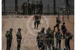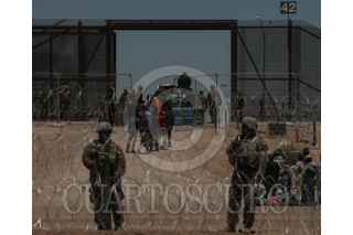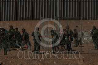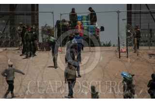 CIUDAD JUÁREZ, CHIHUAHUA, 11MAYO2023.- Migrantes de diversas nacionalidades esperan para ser procesados por las autoridades del departamento de migración de EUA, antes de que finalice el título 42 y entre en vigor el título 8. FOTO: JUAN ORTEGA/CUARTOSCURO.COM