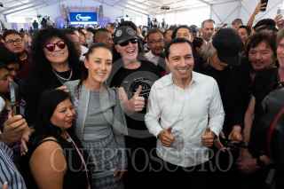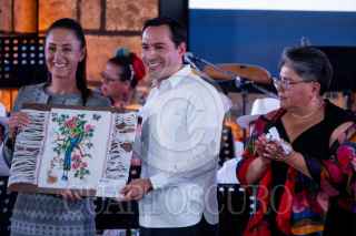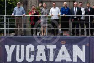 CIUDAD DE MÉXICO, 12MAYO2023.- Mauricio Vila, gobernador de Yucatán, Claudia Sheinbaum, jefa de gobierno de la Ciudad de México, y Raquel Buenrostro, secretaria de Economía, encabezaron la inauguración de Yucatán Expone, muestras que reúne a más de 100 expositores del estado en el Zócalo capitalino para mostrar la riqueza cultural de la entidad. FOTO: GALO CAÑAS/CUARTOSCURO.COM