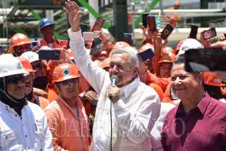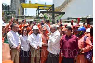 TULA, HIDALGO, 12MAYO2023.- El presidente Andrés Manuel López Obrador realizó una visita a la refinería de la entidad en la que se le construye una planta coquizadora que procesará combustóleo para producir más gasolinas con menos contaminación. En la obra participan más de 9 mil trabajadores y requirió un inversión de 60 mil millones de pesos. El mandatario estuvo acompañado por: Octavio Romero Oropeza, titular de Petróleos Mexicanos, y Rocío Nahle, secretaria de Energía. FOTO: PRESIDENCIA/CUARTOSCURO.COM