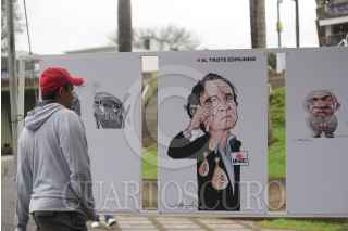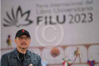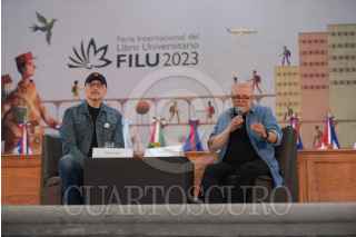 XALAPA, VERACRUZ, 13MAYO2023.- Los caricaturistas José Hernández y Rafael Pineda presentaron la conferencia “El oficio del Monero” en la FILU2023. Aprovecharon la conferencia para parodiar dos “serenatas”, una dedicada por los conservadores a López Obrador y otra, de Felipe Calderón a Genaro a García Luna. FOTO: YERANIA ROLÓN/CUARTOSCURO.COM