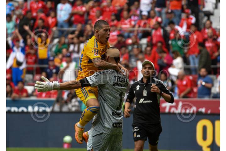 TOLUCA, ESTADO DE MÉXICO, 14MAYO2023.- Los Diablos de Toluca recibieron en el estadio Nemesio Diez a los Tigres en el partido correspondiente a la vuelta de Cuartos de Final del Torneo Clausura 2023 de la Liga BBVA, consiguiendo su boleto a semifinales la escuadra felina, con un marcador final 3-1 y marcador global 4-5. FOTO: CRISANTA ESPINOSA AGUILAR /CUARTOSCURO.COM