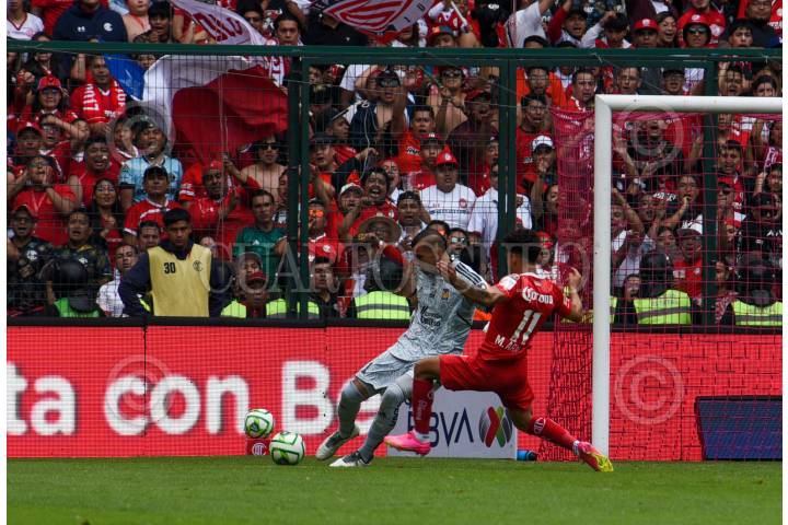 TOLUCA, ESTADO DE MÉXICO, 14MAYO2023.- Los Diablos de Toluca recibieron en el estadio Nemesio Diez a los Tigres en el partido correspondiente a la vuelta de Cuartos de Final del Torneo Clausura 2023 de la Liga BBVA, consiguiendo su boleto a semifinales la escuadra felina, con un marcador final 3-1 y marcador global 4-5. FOTO: CRISANTA ESPINOSA AGUILAR /CUARTOSCURO.COM