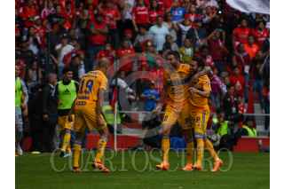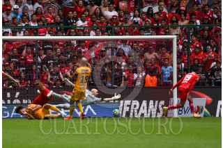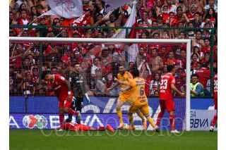 TOLUCA, ESTADO DE MÉXICO, 14MAYO2023.- Los Diablos de Toluca recibieron en el estadio Nemesio Diez a los Tigres en el partido correspondiente a la vuelta de Cuartos de Final del Torneo Clausura 2023 de la Liga BBVA, consiguiendo su boleto a semifinales la escuadra felina, con un marcador final 3-1 y marcador global 4-5. FOTO: CRISANTA ESPINOSA AGUILAR /CUARTOSCURO.COM