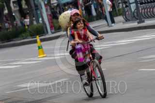 CIUDAD DE MÉXICO, 14MAYO2023.- Madre e hija se pasena en bicicleta en avenida Juárez, aprovechando el descanso dominical.. FOTO: MOISÉS PABLO/CUARTOSCURO.COPM
