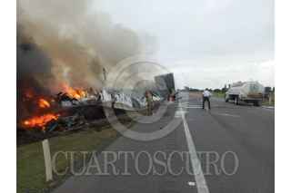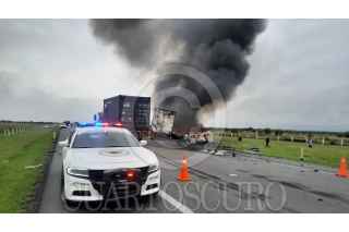 GÜÉMEZ, TAMAULIPAS, 14MAYO2023.- Está mañana ocurrió un choque entre un tráiler y una camioneta dejó 13 muertos. De acuerdo con autoridades del estado, el accidente ocurrió en el kilómetro 80 de la carretera 83 del tramo carretero Hidalgo-Zaragoza y provocó que ambos vehículos se incendiaran. FOTO: CUARTOSCURO.COM