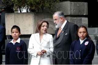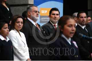 MÉXICO D.F. 16ABRIL2007.-Josefina Vázquez Mota secretaria de educación pública acompañada de José Luis Soberanes presidente de la Comisión Internacional de Derechos Humanos firmaron el conveniode colaboración entre la SEP y la CNDH para la promoción de los derechos humanos de los niños. FOTO: GUILLERMO PEREA/CUARTOSCURO.COM