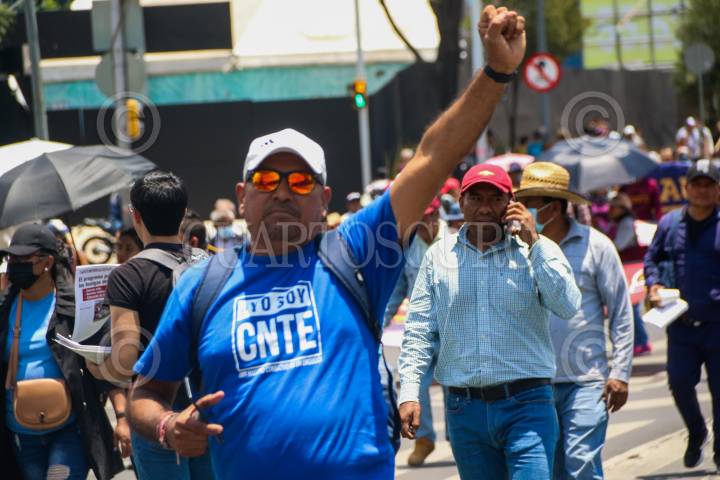CIUDAD DE MÉXICO. 15MAYO2023.- Decenas de maestros de la CNTE realizan una marcha para protestar en el día del maestro del metro San Cosme al Zócalo Capitalino. FOTO: VICTORIA VALTIERRA/CUARTOSCURO.COM