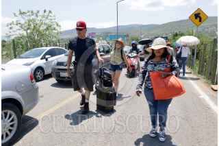 SANTA CRUZ XOXOCOTLÁN, OAXACA, 16MAYO2023.- Profesores de la Sección 22 de la Coordinadora Nacional de Trabajadores de la Educación tomaron los accesos al Aeropuerto Internacional de Oaxaca, ubicado en el municipio conurbado de Santa Cruz Xoxocotlán, como parte de su jornada de movilizaciones para exigir atención a su pliego de demandas 2023. En asamblea estatal, los profesores acordaron el bloqueo, así como levantar el plantón que instalaron en el centro de la ciudad este lunes, y volver a parar labores los días 22 y 23 de mayo. Decenas de pasajeros quedaron varados al suspenderse las actividades de la terminal aérea, la Secretaría de Infraestructuras, Comunicaciones y Transportes, informó la suspensión temporal del servicio e invitó a los usuarios a estar atentos de las redes sociales de las aerolíneas para conocer el estatus de sus vuelos. FOTO: CAROLINA JIMÉNEZ/CUARTOSCURO.COM