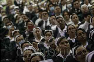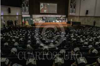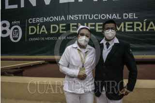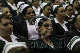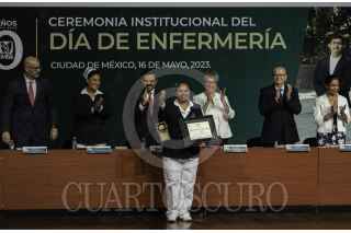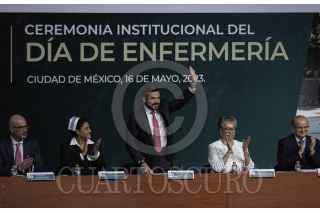CIUDAD DE MÉXICO, 16MAYO2023.- Zoé Robledo Aburto, director general del Instituto Mexicano del Seguro Social; Arturo Olivares Cerda, secretario General del SNTSS; Beatriz Valdovinos Durán durante ceremonia del IMSS por el Día de la Enfermería. FOTO: ANDREA MURCIA /CUARTOSCURO.COM