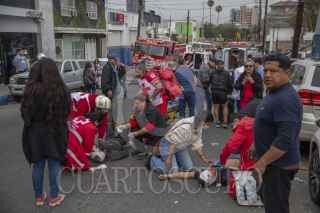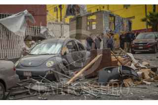 TIJUANA BAJA CALIFORNIA, 16MAYO2023.- Explosión en edificio deja 26 lesionados. Una fuerte explosión se registró esta mañana sobre la Avenida Camino Nuevo y calle 12 de la colonia Madero. El saldo extraoficial de heridos es de al menos 25 personas; 15 en condición verde, 6 en amarillo, tres en rojo y una persona atrapada en los escombros. 3 departamentos y 3 locales se vieron colapsos tras este incidente. Elementos del Cuerpo de Bomberos, Paramédicos de la Cruz Roja, Rescate y Protección Civil se encuentran en brindando atención a los heridos. Hasta el momento se desconoce el origen del siniestro, sin embargo se presume que podría tratarse de un acumulamiento de gas o vapores. FOTO: OMAR MARTÍNEZ /CUARTOSCURO.COM