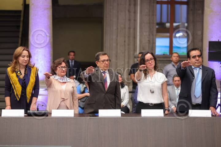 CIUDAD DE MÉXICO, 16MAYO2023.- Arturo Reyes Sandoval, director del IPN; Claudia Sheinbaum, Jefa de Gobierno; Martí Batres, secretario de Gobierno; Luz Elena González Escobar, directora general del Fondo para el Desarrollo Económico y Social, durante la sesión de instalación y primera sesión ordinaria 2023 del "Consejo Económico, Social y Ambiental de la Ciudad de México", en el Museo de la Ciudad de México FOTO: GOBIERNO DE LA CIUDAD DE MÉXICO/CUARTOSCURO.COM