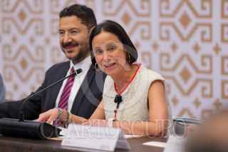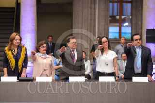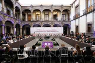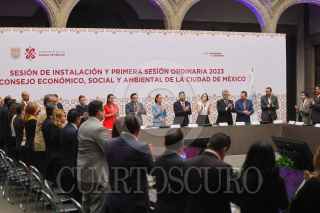 CIUDAD DE MÉXICO, 16MAYO2023.- Arturo Reyes Sandoval, director del IPN; Claudia Sheinbaum, Jefa de Gobierno; Martí Batres, secretario de Gobierno; Luz Elena González Escobar, directora general del Fondo para el Desarrollo Económico y Social, durante la sesión de instalación y primera sesión ordinaria 2023 del "Consejo Económico, Social y Ambiental de la Ciudad de México", en el Museo de la Ciudad de México FOTO: GOBIERNO DE LA CIUDAD DE MÉXICO/CUARTOSCURO.COM