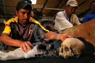 TULA, HIDALGO.16ABRIL2007.- El Instituto de Antropología e Historia mostró el entierro primario encontrado durante la excavación para la construcción del distribuidor vial. Se trata de los restos de un hombre adulto. FOTO: PAOLA HIDALGO/CUARTOSCURO.COM