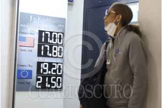 CIUDAD DE MÉXICO, 17MAYO2023. El peso mexicano continúa con su racha con respecto al tipo de cambio frente al dólar estadounidense en casas de cambio del aeropuerto. FOTO: EDGAR NEGRETE/CUARTOSCURO.COM