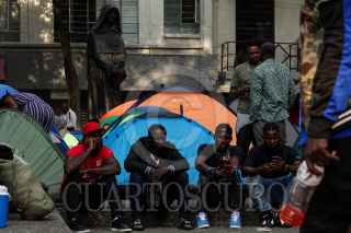 CIUDAD DE MÉXICO, 17MAYO2023.- Más de un centenar de migrantes, en su mayoría de origen haitiano, regresaron a las inmediaciones del Parque Giordano Bruno y la Casa del Migrante en la colonia Juárez, alcaldía Cuauhtémoc, para continuar con sus trámites de regulación migratoria en la Comisión Mexicana de Ayuda a Refugiados (COMAR) a fin de continuar su recorrido hacia la frontera norte. Anteriormente se encontraban en un albergue provisional de la alcaldía Tláhuac, el cual fue desmantelado por autoridades de la capital. FOTO: GALO CAÑAS/CUARTOSCURO.COM
