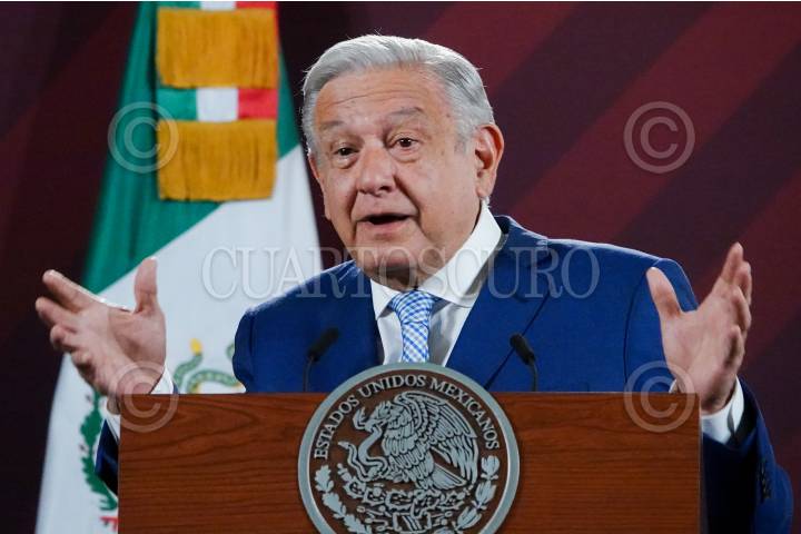 CIUDAD DE MÉXICO, 18MAYO2023.- Andrés Manuel López Obrador, presidente de México; Luis Cresencio Sandoval, secretario de la Defensa Nacional; Alejandro Svarch Pérez, titular de la Comisión Federal para la Protección contra Riesgos Sanitarios (Cofrepis), y Bertha Alcalde Luján, comisionada de Operaciones Sanitaria de Cofrepis, encabezaron la conferencia de prensa matutina en Palacio Nacional. Se destacó el tema del secuestro de alrededor de 50 migrantes en San Luis Potosí, así como el departamento del secretario Sandoval González. Por su parte, Alejandro Svarch comentó el retiro y suspención de un medicamento para la reducción de peso conocido como Redotex, cuyo composición representaba un riesgo a la salud y expone una red de corrupción de administraciones anteriores al interior del organismo. FOTO: GALO CAÑAS/CUARTOSCURO.COM