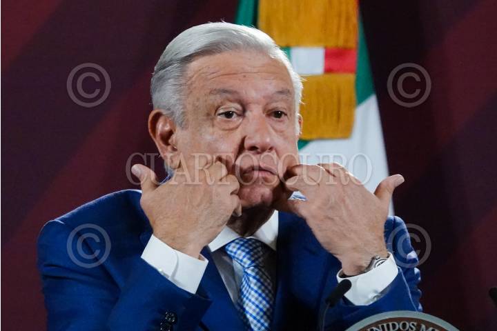 CIUDAD DE MÉXICO, 18MAYO2023.- Andrés Manuel López Obrador, presidente de México; Luis Cresencio Sandoval, secretario de la Defensa Nacional; Alejandro Svarch Pérez, titular de la Comisión Federal para la Protección contra Riesgos Sanitarios (Cofrepis), y Bertha Alcalde Luján, comisionada de Operaciones Sanitaria de Cofrepis, encabezaron la conferencia de prensa matutina en Palacio Nacional. Se destacó el tema del secuestro de alrededor de 50 migrantes en San Luis Potosí, así como el departamento del secretario Sandoval González. Por su parte, Alejandro Svarch comentó el retiro y suspención de un medicamento para la reducción de peso conocido como Redotex, cuyo composición representaba un riesgo a la salud y expone una red de corrupción de administraciones anteriores al interior del organismo. FOTO: GALO CAÑAS/CUARTOSCURO.COM