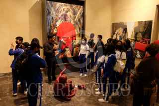 SAN CRISTÓBAL DE LAS CASAS, CHIAPAS, 18MAYO2023.- En el marco del Día Internacional de los Museos, el Museo de San Cristóbal (MUSAC), inauguró una sala que narra de forma general la historia que alberga el recinto. Un edificio completamente neoclásico y construido inicialmente para ser el Palacio de Gobierno del estado pero que en 2015 se convierte en lo que ahora es. En esta ocasión, jóvenes visitaron las exposiciones que se tienen abiertas: “Infancias Posibles” (una exposición de pinturas realizadas por niños de una primaria de San Felipe con el acompañamiento de Hugo Freitas, artista brasileño), otra de las salas alberga la ahora polémica exposición “Infancias Interrumpidas” de los artistas Agustín Castro y Agustín Portillo, por su temática explícita sobre las violencias hacia la niñez en el mundo. Muchos pobladores locales han debatido su permanencia en el museo, y por último la nueva muestra de la historia del edifico. FOTO: ISABEL MATEOS/CUARTOSCURO.COM