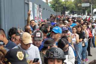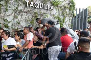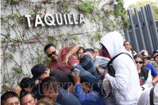 CIUDAD DE MÉXICO, 18MAYO2023.- Personas que se formaron por hasta tres días en las taquillas de la Arena Ciudad de México para conseguir boletos a los conciertos de Luis Miguel denunciaron que no alcanzaron boletos esto debido a que autoridades del recinto permitieron que los revendedores se apoderarán de todo el boletaje. Personal que estaba vigilando las inmediaciones señalaron que a partir del a una de la tarde se iba a iniciar la venta, pero tras media hora se retiraron del lugar señalando que se habían acabado los tickets, sin embargo, muchos de los presentes los acusaron de permitir que otras personas entrarán sin haberse formado. Personal de la Secretaría de Seguridad Ciudadana que también estaba apoyando con la vigilancia se retiró de la nada, y tras esto, un grupo de hombre que fueron acusados de ser revendedores se metieron por la fuerza hasta el frente de la fila. Muchos de los que estaban ahí se fueron decepcionados por no conseguir entradas para algún concierto de El Sol. FOTO: MOISÉS PABLO/CUARTOSCURO.COM