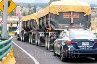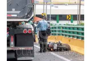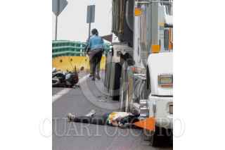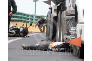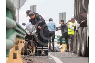 TLALNEPATLA, ESTADO DE MÉXICO, 18MAYO202.- Un motociclista murió al trata de rebasar un tráiler de doble remolque, en el puente vehicular en avenida Mario Colín y Lerma, en la colonia San Javier. FOTO: ROGELIO MORALES/CUARTOSCURO.COM