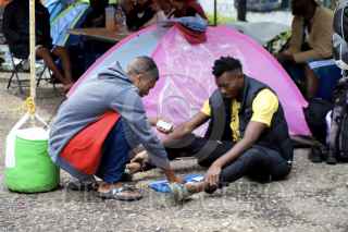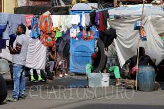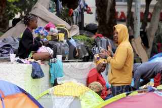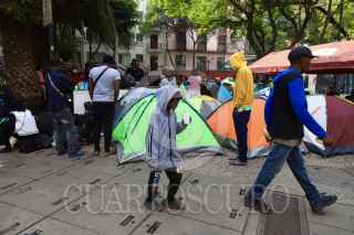 CIUDAD DE MÉXICO, 19MAYO2023. Migrantes provenientes en su mayoría de Haití se han congregado en un campamento en la plaza Giordano Bruno, rebautizada como “La pequeña Haití” de la colonia Juárez, por encontrarse en las inmediaciones de la Comisión Mexicana de Ayuda a Refugiados (COMAR). Tras ser desalojados de distintos albergues por el cierre de los mismos y encontrarse sobresaturados los que aún continúan operando, los migrantes decidieron regresar a la plaza donde pernoctan en espera de ser atendidos por las autoridades. FOTO: EDGAR NEGRETE/CUARTOSCURO.COM