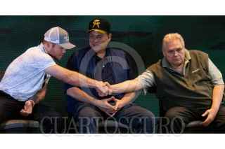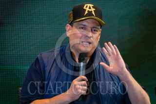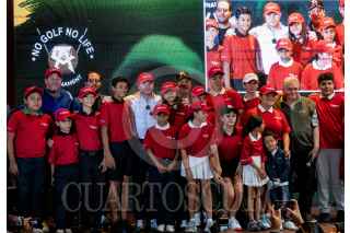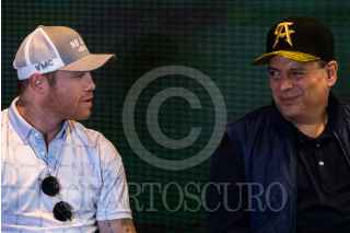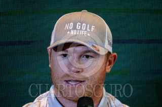 NAUCALPAN, ESTADO DE MÉXICO, 19MAYO2023.- Agustín Liza, arquitecto de campos de Golf y representante de la fundación First Tee en México; León Salame, vicepresidente de operaciones de operaciones de Grupo Bosque Real; Saúl “Canelo” Álvarez, campeón mundial de peso Libra x Libra de boxeo; Mauricio Sulaimán, presidente del Consejo Mundial de Boxeo, y el empresario Carlos Bremer encabezaron la conferencia de prensa para el anuncio de la segunda edición del campeonato de golf “No Golf No Life” en el Club Bosque Real. Durante la conferencia, el boxeador tapatío expresó su gustó por el golf y que le gustaría estar presente en un torneo internacional pero que comprende que no tiene la preparación suficiente para eso. FOTO: GALO CAÑAS/CUARTOSCURO.COM
