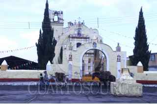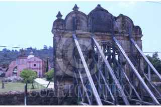 TOCHIMILCO, PUEBLA, 18MAYO2023.- A casi siete años del sismo del 19 de septiembre del 2017 varios templos católicos de comunidades ubicadas a las faldas del volcán Popocatépetl, siguen dañados y con mínimos avances de restauración. Se pudo registrar que aun los templos de Santiago Apóstol en Tochimilco, el de San Miguel del mismo municipio y el de San Pedro en San Pedro Benito Juárez, tienen daños evidentes en sus estructuras. Imagen tomada el día de ayer. FOTO: MARGARITO PÉREZ RETANA / CURTOSCURO.COM