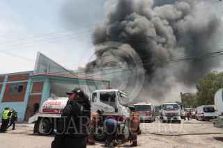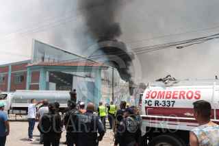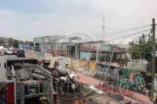 ECATEPEC, ESTADO DE MÉXICO, 19MAYO2023.- Elementos del Heroico Cuerpo de Bomberos de la Ciudad de México y de Ecatepec, sofocaron el incendio de una fábrica de pinturas y solventes, ubicada en la zona industrial de San Pedro Xalostoc. De acuerdo a los reportes de Protección Civil, no se reportaron lesionados. FOTO: ROGELIO MORALES/CUARTOSCURO.COM