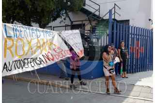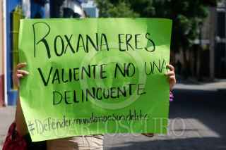 OAXACA, OAXACA, 19MAYO2023.- En atención a la convocatoria emitida por Nos Queremos Vivas Neza y el Comité por la Libertad de Roxana, colectivas feministas se manifestaron en el Centro de Justicia para las Mujeres de la Fiscalía General del Estado de Oaxaca en apoyo a Roxana Ruiz, oaxaqueña condenada a seis años, dos meses y siete días de prisión tras defenderse de su agresor sexual y emplear un uso excesivo de la legítima defensa. FOTO: CAROLINA JIMÉNEZ/CUARTOSCURO.COM