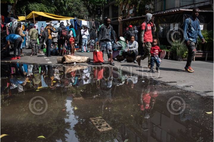 CIUDAD DE MÉXICO, 20MAYO2023.- Decenas de migrantes, la mayoría haitianos continúan reuniéndose en la Plaza Giordano Bruno a pesar de que ayer por la noche personal del Instituto Nacional de Migración (INM) trasladara a los migrantes que se encontraban en el campamento hacia albergues en los estados de Chiapas y Puebla. FOTO: MARIO JASSO/CUARTOSCURO.COM