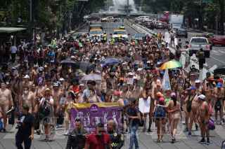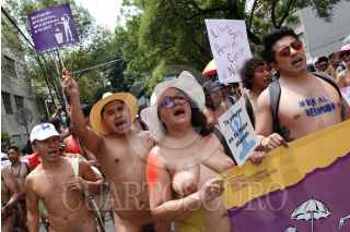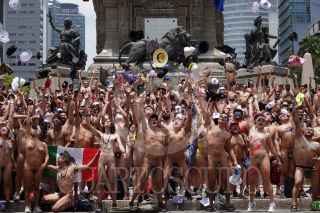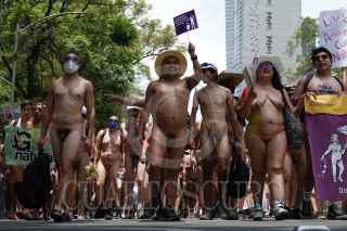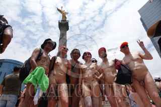 CIUDAD DE MÉXICO, 20MAYO2023.- Decenas de mujeres y hombres se dieron cita en la Glorieta de Cibeles para marchar al Ángel de la Independencia en la segunda edición de la marcha nudista. Iniciativa que busca aceptar el cuerpo y a manera de liberación FOTO: GALO CAÑAS/CUARTOSCURO.COM