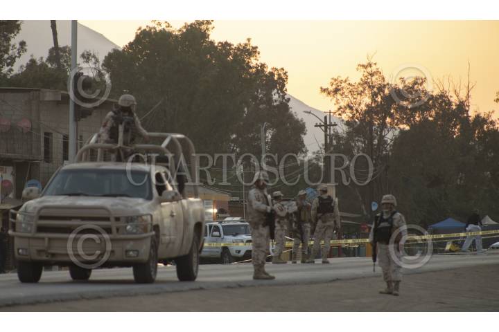 SAN VICENTE, BAJA CALIFORNIA, 20MAYO2023. Diez personas sin vida y nueve heridos, fue el saldo que dejó un ataque armado registrado durante la tarde del sábado 20 de Mayo en el poblado de San Vicente, Ensenada Baja California. Un grupo de personas a bordo de vehículos deportivos tipo Razers, se trasladaban por la carretera Transpeninsular, después de asistir al evento “Cachanillazo”, cuando fueron atacados a balazos. Las víctimas sobrevivientes, fueron trasladadas por paramédicos de la Cruz Roja un hospital para su atención médica. El multihomicidio, desplegó un fuerte operativo por zonas aledañas del municipio de Ensenada por parte de distintas corporaciones. De manera extraoficial se menciona que los presuntos responsables iban directo a asesinar a un Narcotraficante apodado “El Trébol”. FOTO: OMAR MARTÍNEZ/ CUARTOSCURO.COM