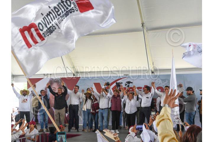 TOLUCA, ESTADO DE MÉXICO, 21MAYO2023.- Delfina Gómez candidata a la gubernatura del Estado de México por MORENA, PVEM y PT sostuvo un encuentro con maestros en San Pablo Autopan, en la zona norte de Toluca, en donde unos de sus compromisos ante los docentes fue basificar al mayor número de maestros en la entidad mexiquense. FOTO: CRISANTA ESPINOSA AGUILAR /CUARTOSCURO.COM