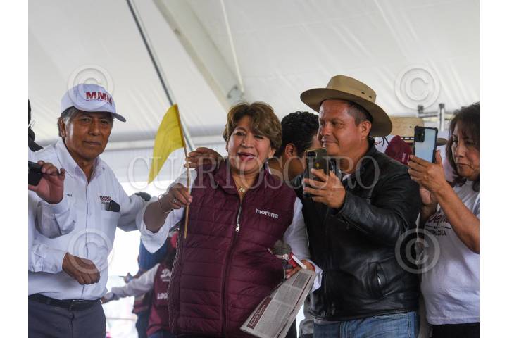 TOLUCA, ESTADO DE MÉXICO, 21MAYO2023.- Delfina Gómez candidata a la gubernatura del Estado de México por MORENA, PVEM y PT sostuvo un encuentro con maestros en San Pablo Autopan, en la zona norte de Toluca, en donde unos de sus compromisos ante los docentes fue basificar al mayor número de maestros en la entidad mexiquense. FOTO: CRISANTA ESPINOSA AGUILAR /CUARTOSCURO.COM