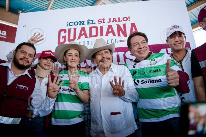 TORREÓN, COAHUILA, 21MAYO2023.- Este fin de semana, el candidato de Morena a la gubernatura de Coahuila, Armando Guadiana Tijerina recibió a la jefa de Gobierno de la Ciudad de México, Claudia Sheinbaum y al dirigente nacional de Morena, Mario Delgado, con quienes encabezó un evento ante miles de simpatizantes, militantes, ciudadanas y ciudadanos de toda la Laguna. FOTO: CUARTOSCURO.COM