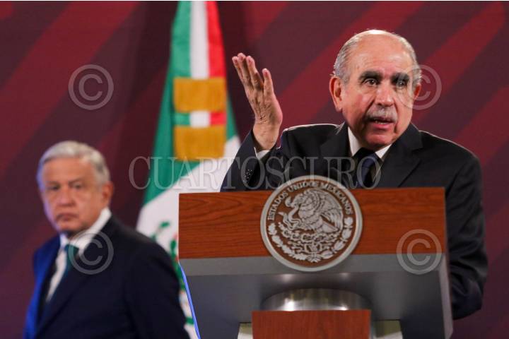 CIUDAD DE MÉXICO, 22MAYO2023.- Andrés Manuel López Obrador, Presidente de México, y Pablo Gómez, director de la Unidad de Inteligencia Financiera, mostraron todos los contactos que fueron autorizados por parte de Sonia Vergara Terrero cuando colaboró con Genaro García Luna, ex secretario de Seguridad Federal y que está sentenciado por narcotráfico en Estados Unidos, el pasado viernes el Ejecutivo informo que está funcionaría ahora fue contrata en la Suprema Corte de Justicia de la Nación. FOTO: MOISÉS PABLO/CUARTOSCURO.CON