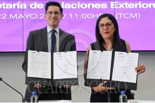 CIUDAD DE MÉXICO, 22MAYO2023.- El Instituto Nacional Electoral (INE) en colaboración con la Secretaría de Relaciones Exteriores (SRE) firmó un acuerdo para que la dependencia gubernamental apoye al instituto para que millones de connacionales puedan hacer efectivo su derecho al voto desde el lugar donde radiquen. FOTO: DANIEL AUGUSTO /CUARTOSCURO.COM