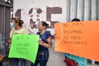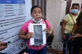 CHILPANCINGO, GUERRERO, 22MAYO2023.- La señora Olga Bruno Nieto madre de Keyli, una adolescente que fue golpeada por otra estudiante del Centro de Estudios Tecnológicos, Industrial y de Servicios (Cetis), con sede en Chilpancingo, el viernes pasado, denunció omisión por parte de las autoridades de ese plantel educativo. Tras la agresión que sufrió una alumna de la Escuela Secundaria Técnica 185 el pasado viernes a manos de una estudiante del CTIS 135, hechos que quedaron grabados en un video, las amenazas contra la menor continúan mientras que autoridades guardan silencio ante este caso de violencia y acoso escolar. La madre de familia dio conferencia de prensa en el acceso principal a la Escuela Secundaria Técnica 185 "Hermenegildo Galeana", ubicada en la colonia El Amate, al norte de la ciudad, donde explicó que desde hace unos meses, su hija había recibido amenazas por parte de su agresora, quien "finalmente si le causó mucho daño, además de las lesiones físicas, la afectó emocionalmente, ya no quiere salir a ningún lado, dice que le da miedo y pena porque en redes sociales le hacen burla". FOTO: DASSAEV TÉLLEZ ADAME/CUARTOSCURO.COM
