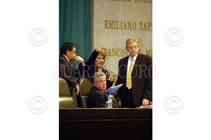 MÉXICO D.F. 17ABRIEL2007.-Los diputados Javier Gonzalez Garza coordinador del PRD y Diodoro Carrasco del PAN entre otros dialogan con la excandidata del a la presidencia Patricia Mercado quien asistio a la sesión en la cámara de diputados. FOTO: GUILLERMO PEREA/CUARTOSCURO.COM