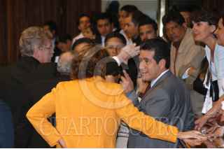 MÉXICO D.F. 17ABRIEL2007.-Los diputados Javier Gonzalez Garza coordinador del PRD y Diodoro Carrasco del PAN entre otros dialogan con la excandidata del a la presidencia Patricia Mercado quien asistio a la sesión en la cámara de diputados. FOTO: GUILLERMO PEREA/CUARTOSCURO.COM