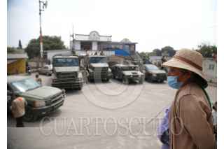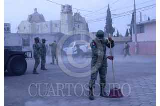 ATLIXCO, PUEBLA, 24MAYO2023.- El volcán Popocatépetl continúa su actividad, una gran cantidad de ceniza cae en la comunidad de San Pedro Benito Juárez. A esta comunidad llegaron efectivos militares para ofrecer consultas médicas a la población que lo necesite. FOTO: MARGARITO PEREZ RETANA/CUARTOSCURO.CON