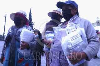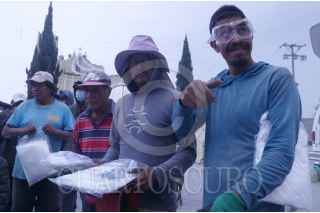 ATLIXCO, PUEBLA, 24MAYO2023.- Habitantes de San Pedro Benito Juárez, en Atlixco, hacen fila para recibir un kit de protección por la contingencia volcanica que entrega el gobierno de Puebla. FOTO: MARGARITO PEREZ RETANA/CUARTOSCURO.COM