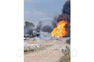 POLOTITLÁN, ESTADO DE MÉXICO, 24MAYO2023.- El Servicio de Urgencias del Estado de México (SUEM) informa que derivado del reporte por explosión e incendio al interior de un predio cercano al poliducto LPG 14, en Santa Ana Nuevo-Palmillas, en domicilio conocido como El Tesoro, atendieron a siete personas lesionadas, quienes presentaron quemaduras leves. Asimismo, trasladó a dos hombres al Hospital General de Pemex, en Tula, Hidalgo, uno de 49 años que presentó luxación de hombro derecho y herida por radiación en mano derecha, y otro de 41 años con heridas por radiación en cuello y mano derecha. FOTO: CUARTOSCURO.CON