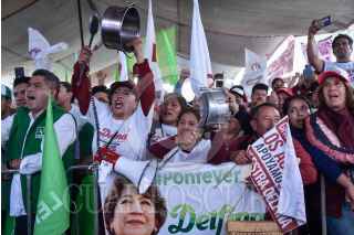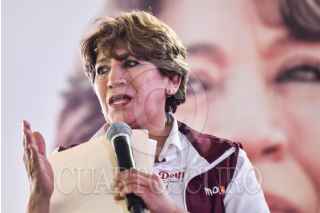 SAN PEDRO TULTEPEC, ESTADO DE MÉXICO, 24MAYO2023.- Delfina Gómez, candidata a la gubernatura del Estado de México, por la coalición “Juntos Hacemos Historia” conformada por los partidos políticos: Morena, PT y PVEM, durante su gira de campaña en la entidad. FOTO: MARIO JASSO/yCUARTOSCURO.COM