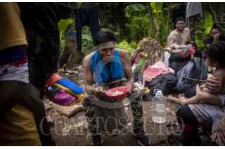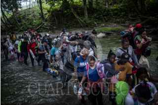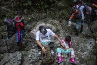 CHOCÓ, COLOMBIA, 25MAYO2023.- Migrantes de distintas nacionalidades, principalmente de Venezuela, Haití y Ecuador, continúan su tránsito hacia el norte del continente atravesando la selva que divide Colombia y Panamá, conocida como "Tapón del Darién". Los migrantes, entre los que se cuenta también un creciente número de asiáticos, sobre todo chinos, pakistaníes, nepalíes e indios, ingresan a la selva principalmente a través de dos localidades: Capurganá y Acandí, ambas pertenecientes al departamento colombiano del Chocó. En los últimos días, según aseguran autoridades de Acandí, el promedio de ingreso de migrantes a la selva por esta localidad es de 500 diarios y se estima un número similar en Capurganá. FOTO: PEDRO ANZA /CUARTOSCURO.COM