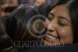 TIJUANA BAJA CALIFORNIA, 24MAYO2023. Después de cuatro años y cinco meses, Alina Mariel Narciso, la mujer policía que fue sentenciada a 45 años de prisión, tras asesinar a su esposo en defensa propia, fue liberada durante la tarde de este 24 de mayo. Socorro Tehuaxtle, madre de Alina, luchó de manera incansable para exigir la justicia de su hija, hoy durante una audiencia llevada a cabo en Mexicali, la ex policía, fue declarada inocente. En la la quinta sala del Tribunal Superior, la resolución al juzgar en la perspectiva de género, se indicó que Alina, actuó en legítima defensa personal. Alrededor de las 19:40 horas, medios de comunicación, familiares, amigos y personas del movimiento feminista, recibieron a Alina a las afueras de la Penitenciaria de la Mesa en Tijuana, Baja California. FOTO: OMAR MARTÍNEZ/ CUARTOSCURO.COM