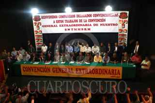 MÉXICO, D.F. 17ABRIL2007.- Inaguran la convencion general extraordinaria de los Trabajadores del Sindicato Nacional de Mineros Metalúrgicos y Similares de la República Mexicana, donde cientos de agremiados mostraron su aopoyo a Napoleón Gomez Urrutia. FOTO: SAUL LÓPEZ/CUARTOSCURO.COM