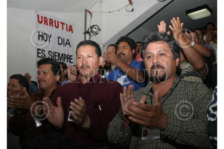 MÉXICO, D.F. 17ABRIL2007.- Inaguran la convencion general extraordinaria de los Trabajadores del Sindicato Nacional de Mineros Metalúrgicos y Similares de la República Mexicana, donde cientos de agremiados mostraron su aopoyo a Napoleón Gomez Urrutia. FOTO: SAUL LÓPEZ/CUARTOSCURO.COM